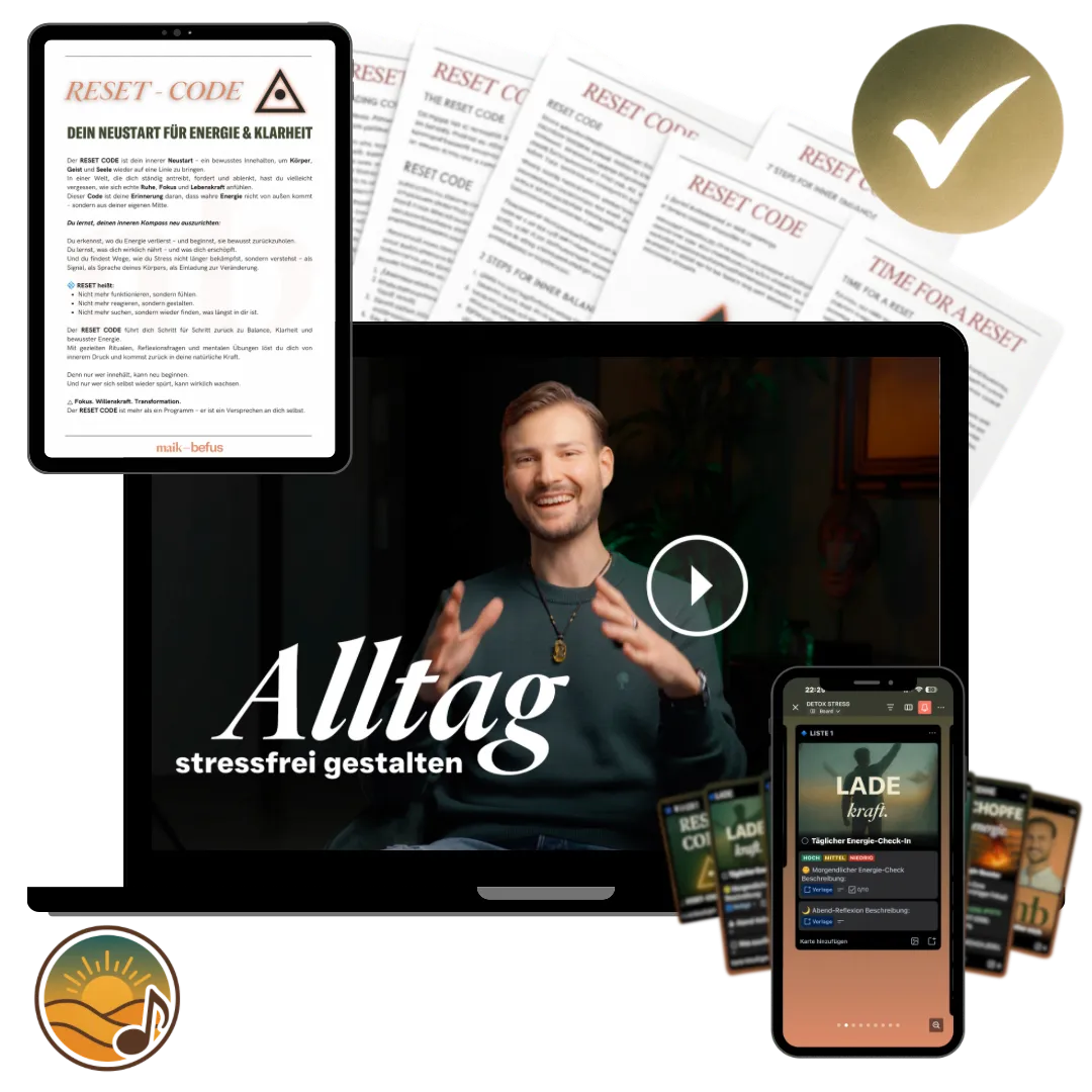 inkl. 🎁 Persönlicher Energie-Analyse (PDF-Bericht) & 🎁 7-Tage-Reset-Challenge (Video + Workbook, Wert: 129 €).